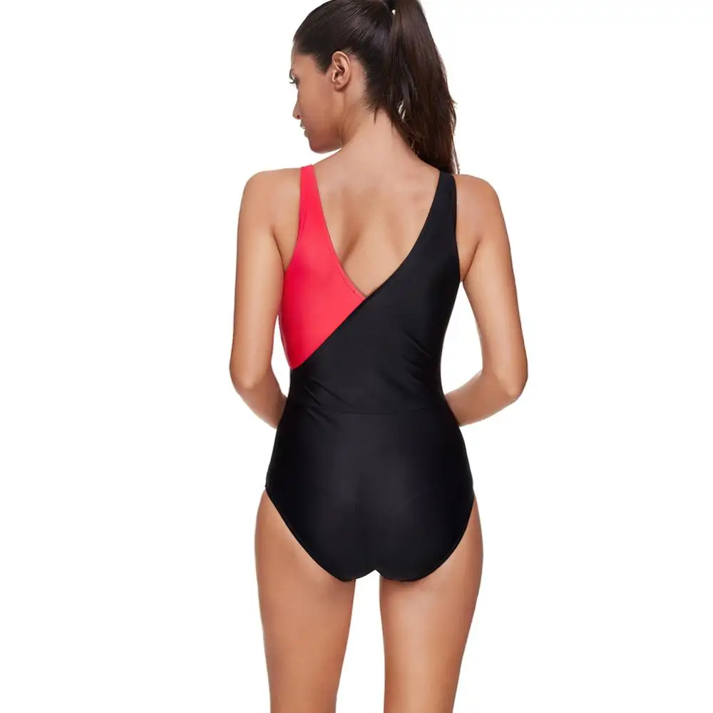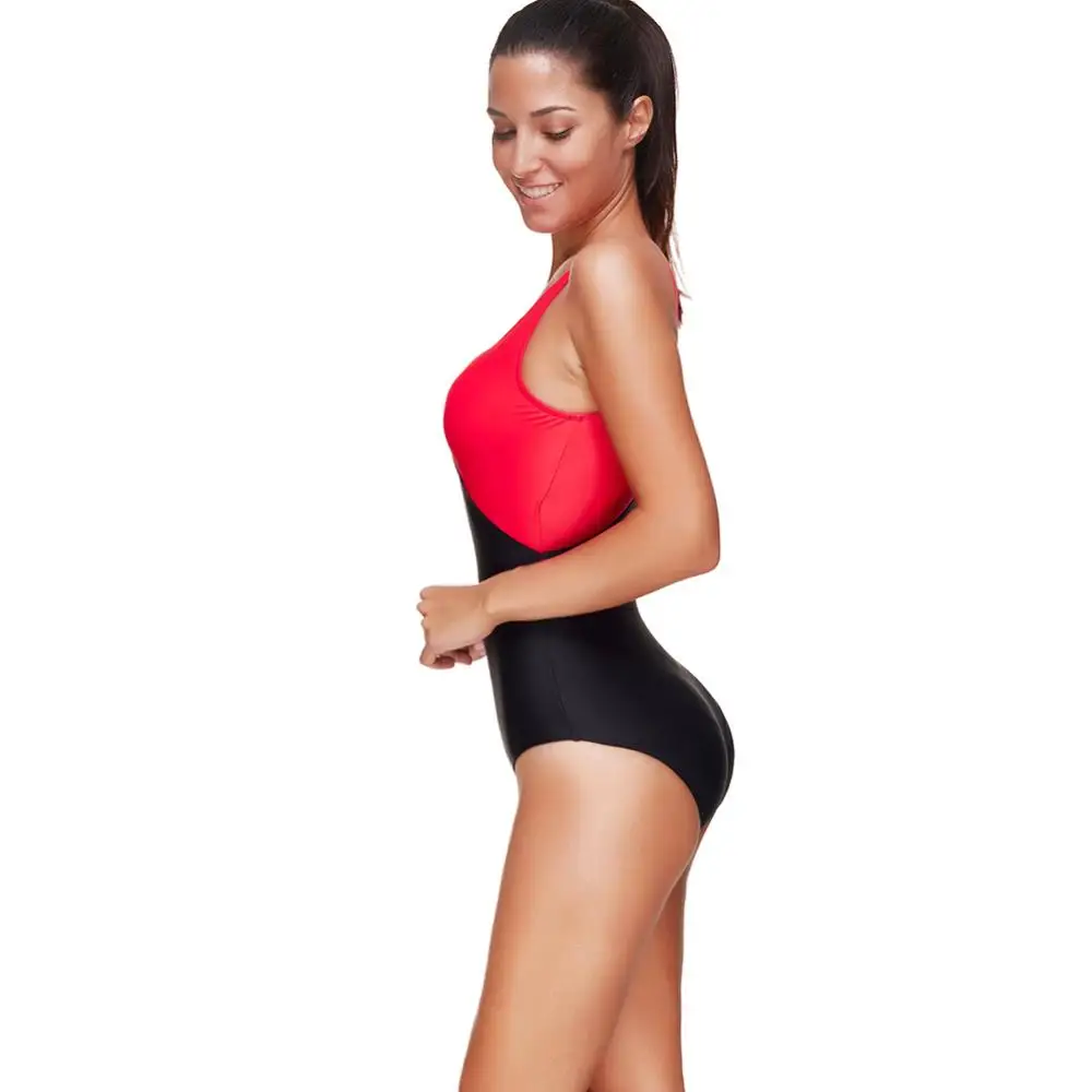 One Piece Sport Bikini Swimsuit sliming Patchwork Women Swimwear halter bikini plus size